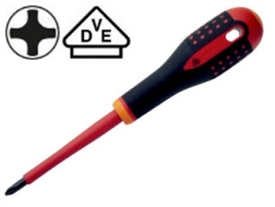 Voor het werken onder stroomspanningen tot 1000 volt. Uitvoering: kling fijn gepolijst en hoogglans verchroomd, en over de gehele lengte gehard. Bled is gebruineerd. Ronde driecomponenten-greep met duidelijk herkenbare kleur-codering. Materiaal: kling vanadium-extra, handgreep thermoplastisch elastomeer, isolatie direct op de kling aangebracht. Individueel geinspecteerd en geproduceerd volgens IEC 60900.
