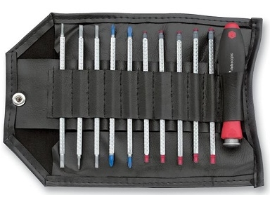 Set insteekschroevendraaiers voor gleuf-, phillips- en inbus schroeven. Click-stop systeem. Variabele klinglengte 18-90 mm.Type: 269T11.